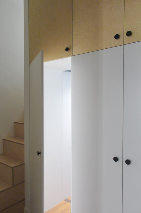 Le coin nuit cède à présent quelques mètres carrés au profit de trois nouvelles fonctions : un espace de travail autour d’un bureau fonctionnel, une mezzanine pour la détente et l'accueil des amis et un dressing confortable. Une touche de bleu vient rythmer les volumes et le bouleau modernise la composition. La lumière baigne l’ensemble et traverse les verrières. Tel un couteau suisse, la chambre devient multi-fonctions pour répondre à chaque moment du quotidien et laisser s'exprimer toutes les passions.